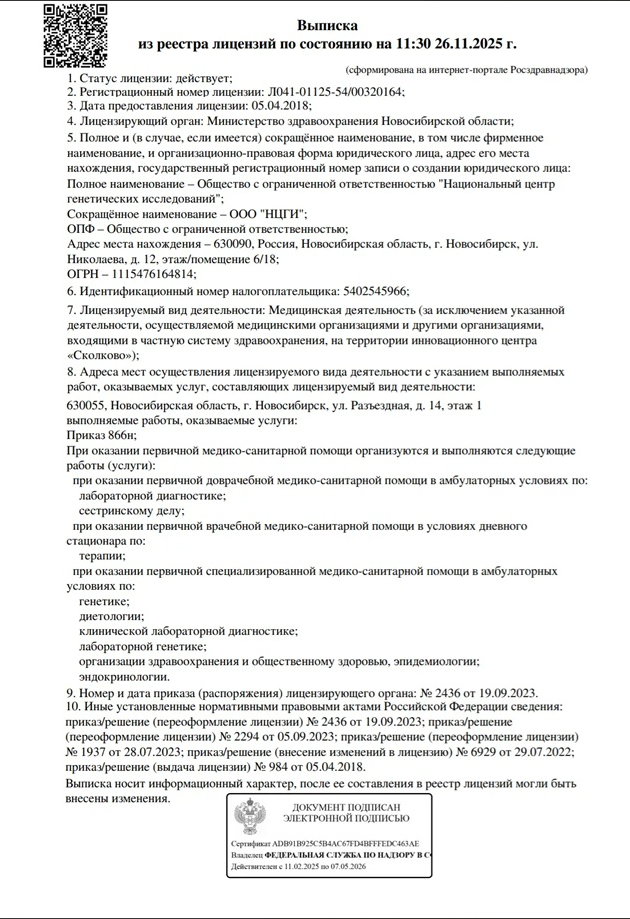 Каждому заказу присваивается уникальный индивидуальный номер. Лаборатория обеспечивает 100% сохранность и конфиденциальность всех полученных от вас данных.